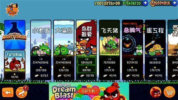 玩家可使用羽毛提升小鸟等级,提高小鸟得分能力,打造终极鸟群。