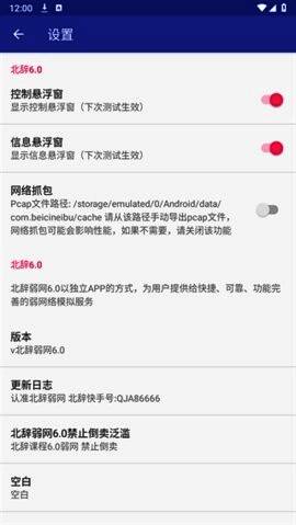 3、启用悬浮窗功能:开启控制悬浮窗,便于测试中实时调整网络参数,同时展示信息悬浮窗获取详细测试数据。