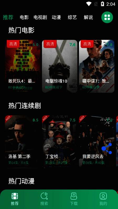 3. 紧跟热门:罗列最新热门资源,充分满足用户观看需求,大家可一同观看最新影视、动画等。