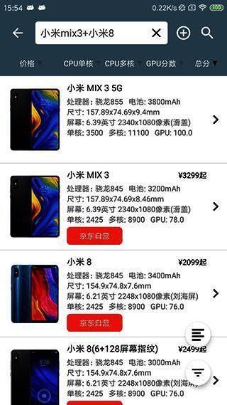 3. 增添计算机处理器的CPU参数和cinebench分数,增加图形卡的GPU参数和3DMark分数,且支持搜索。