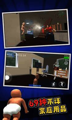 3、被爸爸抓住时会扣除体力值,出现挣脱判定,成功挣脱会有弹反进度和体力减少,进入疲惫状态;失败则命减少进度条并减少体力值,体力值归零游戏失败,可调节奶瓶恢复体力。