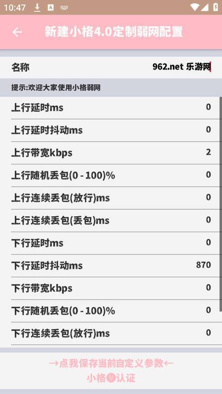 小格11.0下载APP的最新版本操作简单便捷,功能强大。它能进行多种弱网络模拟,助力用户在枪战游戏中提升网络流畅度,可按需定制弱网络参数,还能保存设置的参数,自由添加配置模板,选择应用中需测试的应用,带来一键式便捷体验。该软件能与多种手机完美兼容,随时随地轻松模拟各种网络状况,一键改变薄弱网络数据,让用户享受科技带来的自由便利。