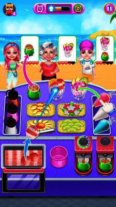玩家可挑选不同的冰淇淋、鲜果和装饰品,制作独特水果圣代,还能调整制作环节顺序,体验制作流程。游戏有任务系统,需按要求制作特定圣代,完成获奖励解锁更多食材与创意。也能自由创作,选不同配料与食材发挥创意。还有评分系统,根据口味、外观等给甜品评分,提升制作技巧挑战高分。