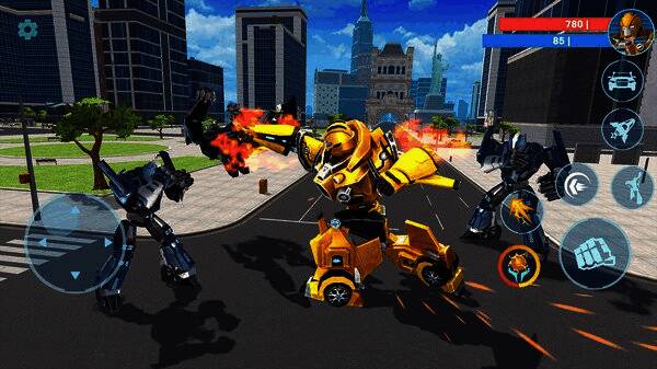 2、【震撼视觉效果】采用 3D 引擎打造,战斗场面激烈,机甲变形、武器攻击效果逼真。