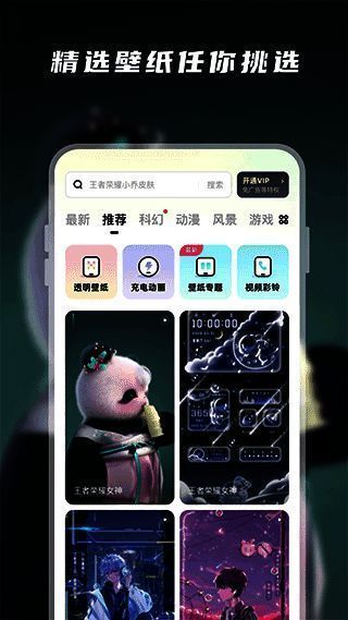 1、拥有强大的壁纸搜索功能,用户可通过关键词查找心仪的壁纸,涵盖风景、动物、动画等各类主题。