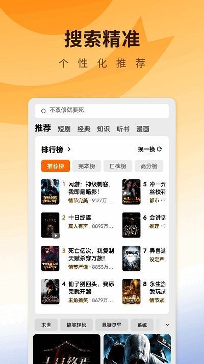 3. 免费小说:收录大量小说,涵盖阅读、听力、通俗小说、影视小说、出版小说、有声小说等类型。