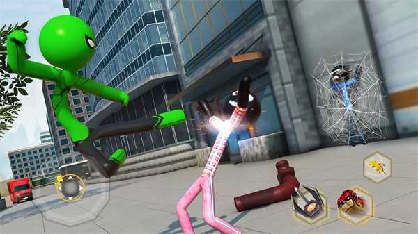 1、玩家可自由操控钢铁蜘蛛侠在城市中飞跃,利用蛛网和飞行技能快速移动,完成任务和战斗。