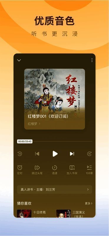 3、进入详情页后,自动加载听书,戴上耳机尽情享受。