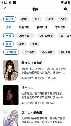 1. 涵盖互联网上的所有小说资源,每日都有大量新作品可供阅读。