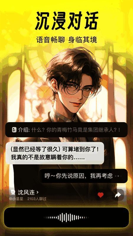 3. 支持与AI角色进行语音聊天,可通过录制的语音随时互动。