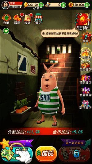 《逃亡兔手机版》是一款休闲经典的 IP 跑酷游戏。游戏中设有各种各样的谜题和智力挑战,玩家需仔细观察环境、收集线索,凭借推理和创造力解决问题,以此推动故事发展。同时,玩家要快速反应、果断决策,制定有效策略来摆脱追捕者。游戏拥有众多关卡和丰富的环境设定,像森林、城市、实验室等,每一关都有独特布局与障碍,带来不同挑战。