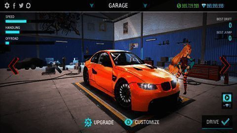 4、游戏提供多种类型的赛车,涵盖跑车、越野车、摩托车等,每辆车都具备不同的性能和特技能力。