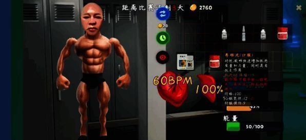 1、以健身为主题,采用恶搞风格,对健身元素进行夸张幽默处理,让玩家游戏时轻松欢乐。