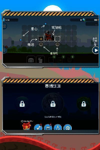 1. 车辆有星球、挑战和锦标赛三种游戏模式。