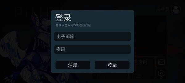 1、下载安装phira模拟器安卓版,运行游戏进入主页面,点击右上角人像。