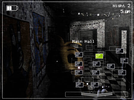 1. 画面左上角的电池图案代表剩余电量,使用灯光和手电会消耗电量,需留意使用量,防止玩具攻击时无法抵抗,第二晚电量会自动恢复满格。