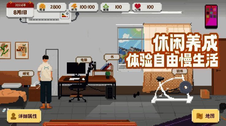 这是一款卡通风格的模拟管理休闲游戏。玩家扮演失业返乡的年轻人,要找寻生活乐趣、重新振作。能自由选择职业发展,体验多种结局。感兴趣的玩家别错过,点击下载即玩。