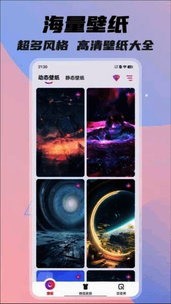 一糖壁纸app内置了涵盖潮流热点、明星偶像、自然风光等多个分类的壁纸资源,种类繁多且持续更新。用户可以根据自己的喜好自由选择,并通过一键更换功能快速美化手机桌面。此外,平台还引入了创意模板和图像处理工具,让用户不仅能使用现成资源,还能亲手打造专属壁纸。