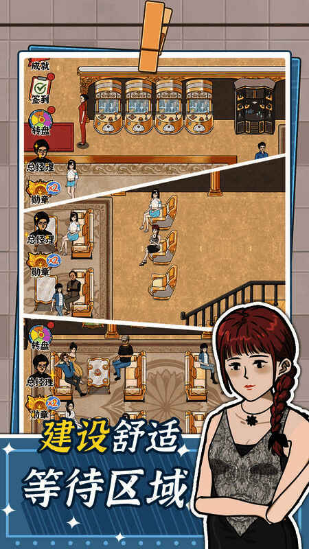 玩家还可以招募并培养不同等级的员工团队,提升服务质量有助于建立良好口碑,促进客户回流。同时,游戏中还设有丰富的娱乐设施等待解锁,如游泳池、娃娃机等,进一步延长顾客停留时间,增加消费潜力。