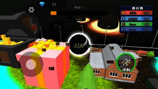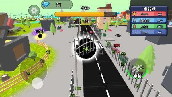 1、游戏包含多个充满挑战的城市区域,玩家需依据黑洞的移动速度和范围,合理选择前进方向和目标。