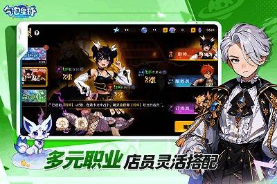 游戏设计了近百位性格鲜明的店员角色,如热血兔耳少年、熊猫大厨、哥特少女等,每位角色都拥有独特的职业定位、能力属性、背景故事及外观造型。玩家可以根据餐厅需求自由招募并合理搭配店员,充分发挥他们的特长,从而提升餐厅的整体运营效率。