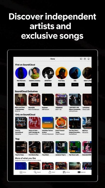对于有创作欲望的用户来说,SoundCloud不仅是播放器,更是展示才华的舞台。注册账号后即可上传作品,分享至社交网络吸引粉丝关注,符合条件还能开启盈利模式赚取收入。许多如今知名的电子音乐人、说唱歌手正是从这里起步,凭借独特风格迅速走红。而对于听众而言,支持喜爱的创作者也变得简单直接——点赞、评论、转发三连操作,就是对他们最大的鼓励。