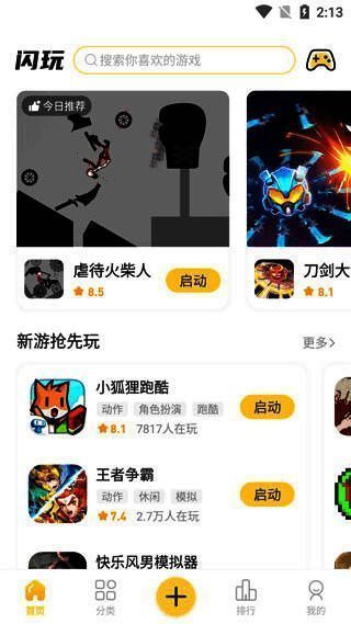 新用户只需简单几步即可开启畅玩之旅:首先下载并打开闪玩App,在首页浏览推荐游戏;接着可通过“分类”功能按类型精准查找心仪内容;点击排行榜还能了解当前最受欢迎的新游与热门榜单;最后找到目标游戏后,无需下载,直接点击“启动”按钮即可进入游戏。整个过程流畅高效,零学习成本,适合各年龄段玩家快速上手。