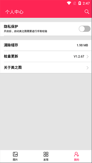 软件支持个性化收藏功能,用户可将喜爱的壁纸加入收藏夹,方便日后一键设置。此外,《美之图》还会定期更新壁纸库,确保用户始终能接触到最新、最热门的图片作品。每一张壁纸都经过严格筛选,保证高清无水印,带来极致的视觉体验。