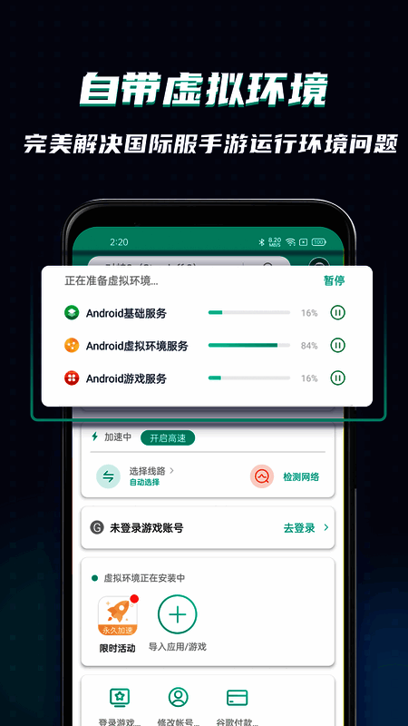 针对海外游戏玩家常见的谷歌服务缺失问题,OurPlay能够自动匹配用户手机型号,安装相应的GMS套件,完美模拟谷歌运行环境,彻底解决海外游戏闪回、死机、安装失败等难题,让玩家无需手动配置,轻松上手。