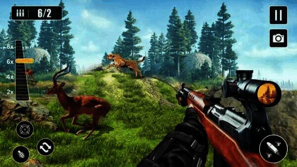 玩家会在森林、草原、沙漠等多个自然环境中追踪并猎杀特定动物。使用高精度狙击枪时,要计算风速、射击角度等保证射击精准。按任务要求成功捕猎指定种类和数量的动物以完成挑战,狩猎中需保持隐蔽,提高生存能力。