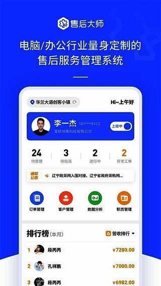 综合来看,售后大师不仅功能全面覆盖售后全流程,更通过智能化派单、可视化数据、精细化管理帮助企业降本增效。尤其适合家电、IT设备、工业制造等行业对售后服务有高要求的企业。下载使用后,你会发现——原来售后也能这么“聪明”。