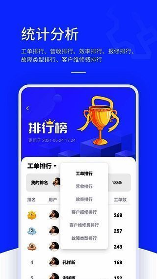 平台支持多维度数据分析,包括工作订单排名、收入排行、故障类型统计、客户维修成本趋势等,帮助企业精准定位问题、优化资源配置,并为员工绩效考核提供客观依据,真正用数据说话。