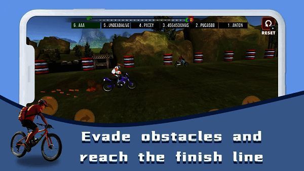 1、玩家在比赛中要控制自行车的速度、平衡和跳跃,迅速反应以应对赛道上的各种障碍,保持车速稳定。