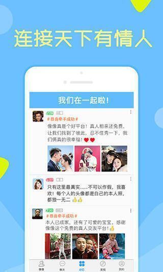 像像最新版是以真人化身为核心的社交软件,运用面部识别技术,让用户在虚拟空间建立真实人际关系,增强交流互动的真实性。这是一个可免费找对象的真人相亲平台,有真人交友、视频、聊天,头像均为真人照,还能天天抢喜钱。