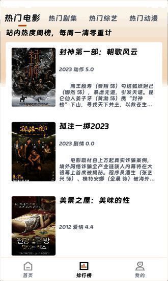 4. 具备每日精选、每周票房榜单、好评榜单等多种排行榜功能,助您掌握最新电影资讯。