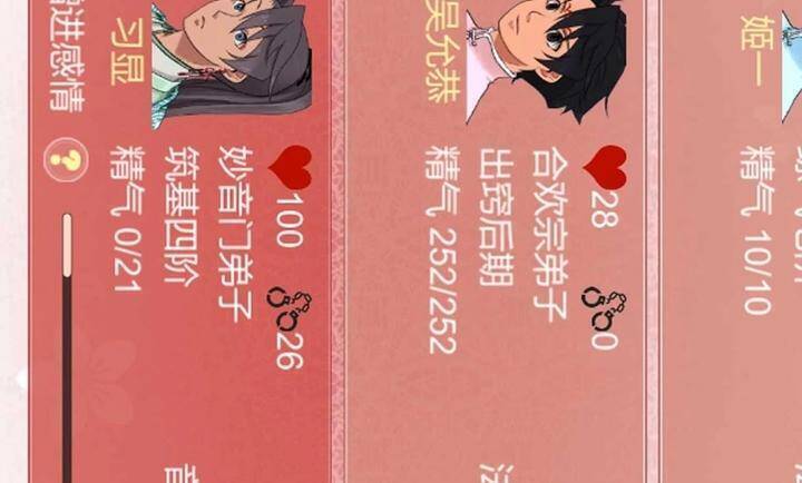 2、第二步,筛选合适的角色。仔细查看角色履历,确保他们没有心上人或道侣,且未被异性救过,男性好感度控制在70以下(建议60以下)。若角色有心上人或道侣,可考虑除掉对方,但要等其“放下感情”后再介绍新对象。修为越高的夫妻生育概率越低,优先考虑低阶修士。