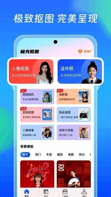 《极光抠图》是一款集多种图像处理功能于一身的应用,它巧妙地整合了人物抠图、美颜相机以及证件照处理等实用功能。其核心优势在于先进的智能AI识别技术,能精准抓取并处理图像细节,让照片处理变得既简便又高效。无论是日常随手美化照片,还是专业领域对图像质量有高要求,极光抠图都能轻松应对。