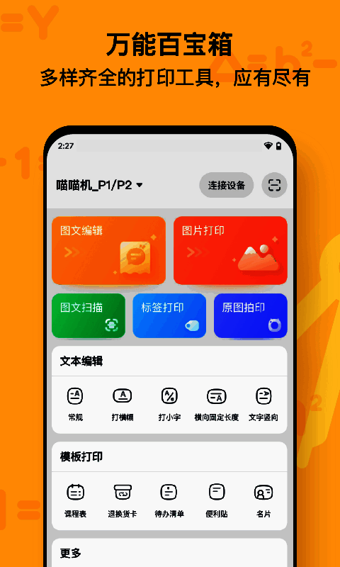 喵喵机安卓版是一款专门为喵喵打印机量身打造的移动应用软件。安装此软件后,用户能够在手机上自由选择打印内容,无论是截图、图像,全彩或是灰白色,都能满足需求。软件还提供丰富多样的模板和字体,让打印效果更令人满意。安装后可随时在手机上打印照片,添加模板或修改字体,使照片打印既方便又多样。