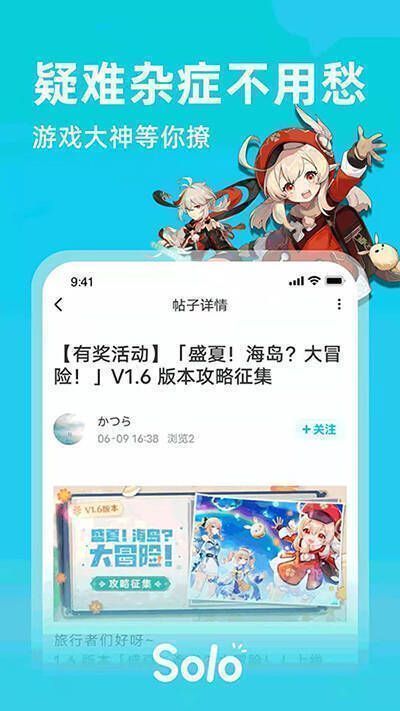 Solo游戏平台凭借玩家自主生成的优质内容,汇聚了不同游戏圈的玩家,为游戏爱好者提供一站式交流和体验服务,还为喜欢同一游戏的朋友提供大量分享交流机会。平台具备最新版本信息、高质量游戏攻略、专家技术分享、趣味日常等功能。玩家总能找到心仪的游戏圈子。此外,还有官方游戏玩家加入社区,玩家除了解官方福利,还能与策划者和制作人近距离交流,表达对游戏的看法。感兴趣的朋友,快来下载使用吧!