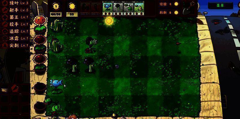 1、阳光菇:子弹经过时有概率转化为阳光。