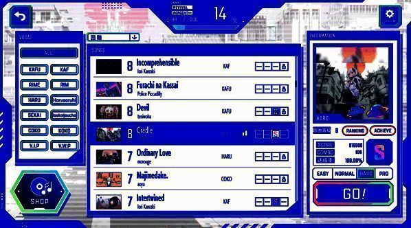 3. 接着,玩家需选择要挑战的曲目以及难度,点击“GO”正式开始游戏。