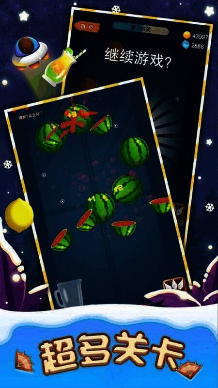 3、切水果积累积分可解锁新场景和水果种类,增加可玩性。