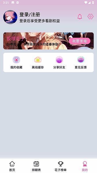 注册账号:打开花子动漫APP后,用户可以选择注册账号或使用第三方账号登录,如微信、QQ等。