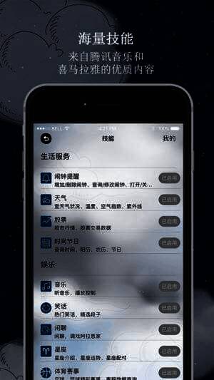4、技能中心:能为智能音箱设置整点报时等技能,还有使用说明。