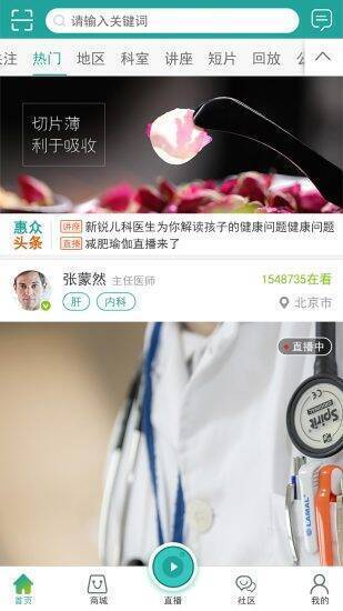 大医惠众APP专注健康行业,为广大用户提供健康知识学习资源和公益短片,同时为病人提供咨询和讲座服务。