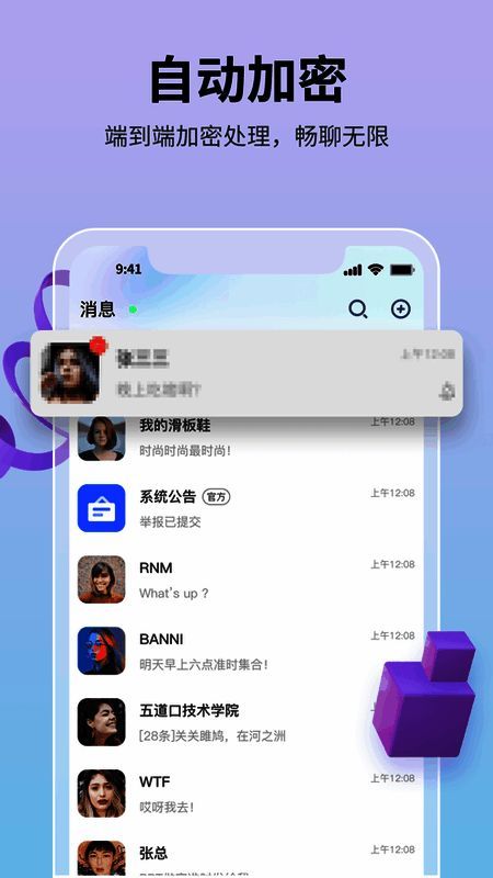 这款通讯软件运用高强度商用算法对即时通讯数据进行端到端加密,能很好地保护用户隐私。它还能随时守护个人隐私,自动销毁聊天数据,营造安全的交流环境。同时,它支持市面上各类即时通讯软件的功能,实用又易用。