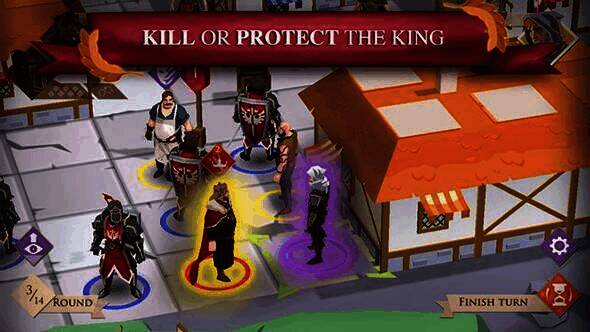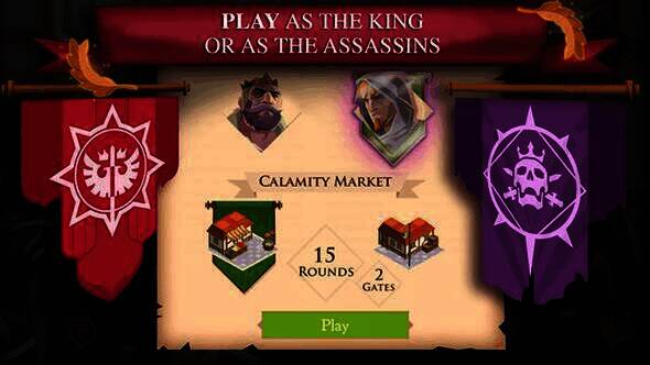 这是一款由两名玩家参与的游戏,策略和欺骗元素贯穿其中。一名玩家操控邪恶国王和他的骑士,他们要在暴民中强行闯入城堡;另一名玩家操控暴民,更关键的是那三名藏在人群中的刺客,他们试图杀死或阻止国王,让民众以武力对抗国王。国王在被臣民制服前,要借助侍卫用计谋和暴力消灭刺客,进而逃入宫殿。