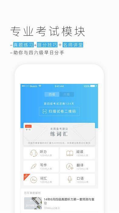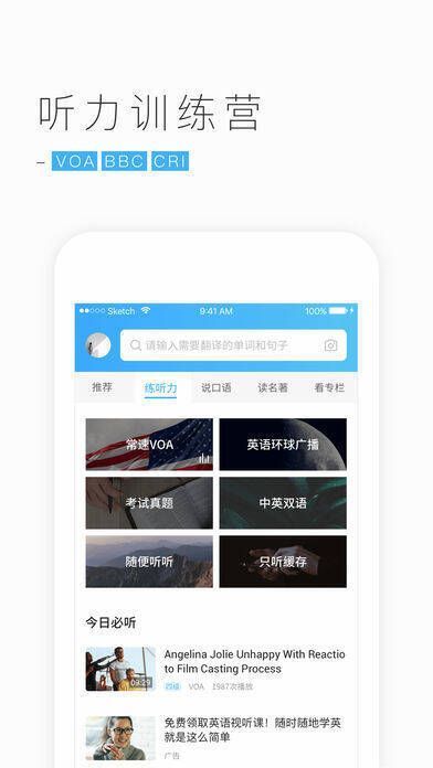 3、【发音地道】与CRI共同打造32万纯正真人语音,支持离线真人发音,搭配VOA/BBC听力、四六级真题听力,让听力提升不再困难。