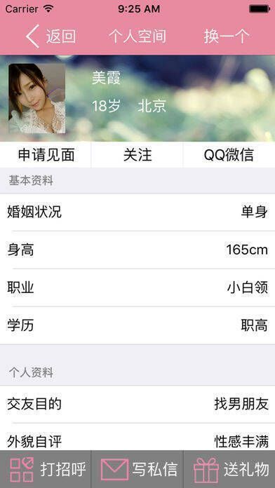 查看附近的单身男女,寻找让你有初恋感觉的那个人,勇敢地跟他打个招呼;