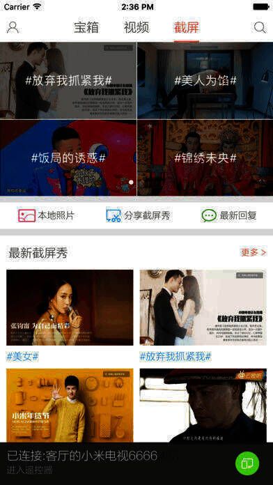 4、截屏功能:点击截屏按钮,可随时截取电视内容,并分享至微信朋友圈。